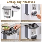 【Quality Materials】: Kitchen trash can made of high quality food grade PP TPE materials , safe, tasteless. The small hanging trash can is made of silicone, so collapsible and can effectively save space in your kitchen; Dimension: 9.9 * 5.7 * 11.2 inch; Capacity: 2.4 gallon 【Save Space】: Our Hanging trash can collapsible and hangable design extremely save more space, When not in use, you can fold it up and open it when in use. (Applies to kitchen cabinet doors with a thickness of less than 0.86 inch/2.2cm ) 【Easy To Install & Use】: Easy to install, simply attach the compact folding trash can to any cabinet drawer or door. No need to constantly open and close cabinet doors with wet hands when you're cooking fresh food, slicing and dicing, compared to under-sink bins 【Wide Application】: There is a fixed bracket at the bottom of the trash can, you can also put it on the ground if you want. Hanging trash can is widely used not only in the kitchen, but also in the office, bedroom, bathroom and car. You can place it anywherever you needed 【After-Sale 】: Intimate garbage bag storage design, a garbage bag can be extracted directly when in use, which is effortless to draw smoothly. Easy to use. if you have any suggestion about our trash can, please us, we will reply to you within 24 hours, wish you a happy shopping