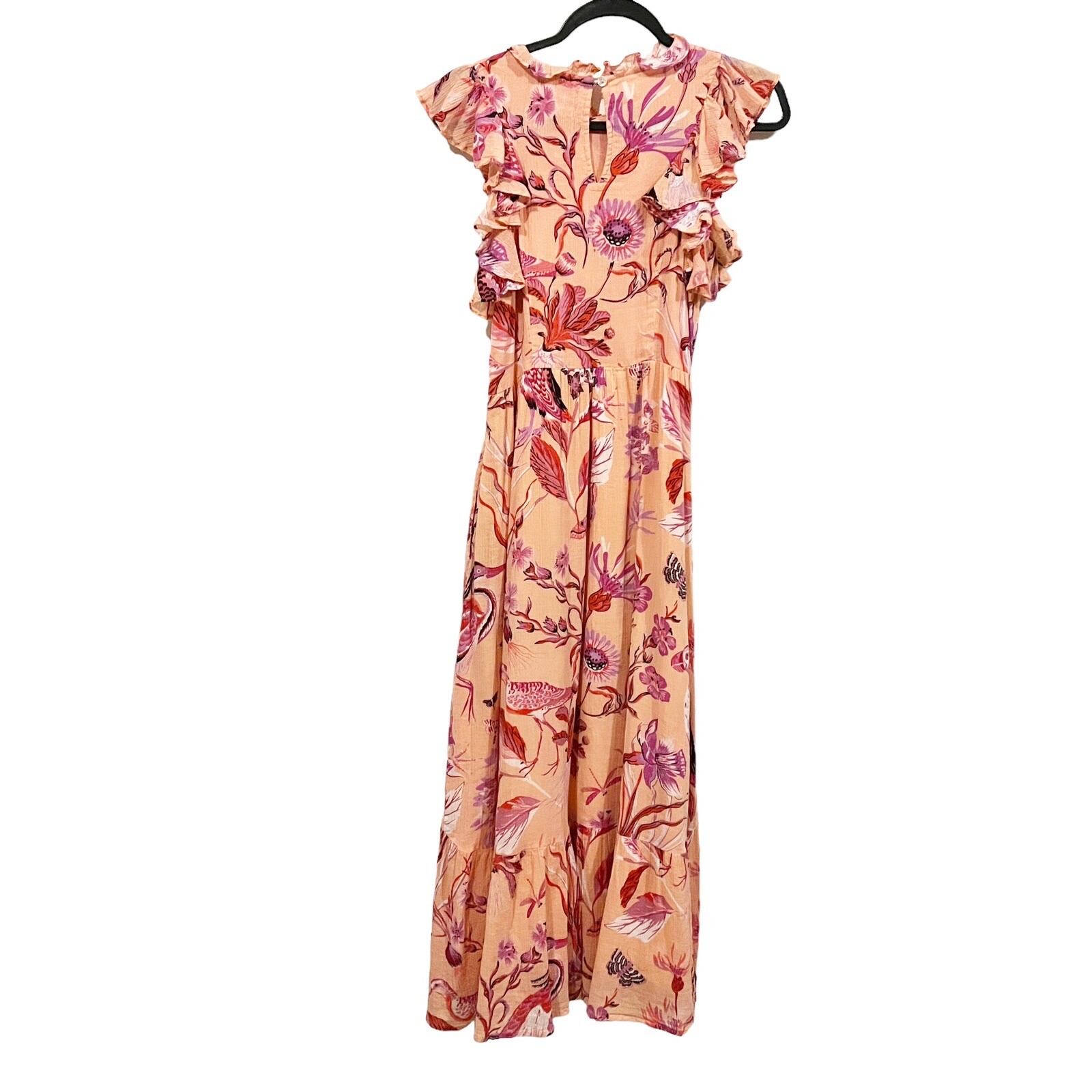 Banjanan Maxi Dress Banjanan hanna floral cotton voile maxi dress is fully lined and features flutter sleeves and a subtle ruffle neckline. A back keyhole, side zipper closure, and side pockets. Made with 100% cotton. No noted flaws. Size XS Pi-pit 17” length 52” Color: Jubliee Apricot Blush