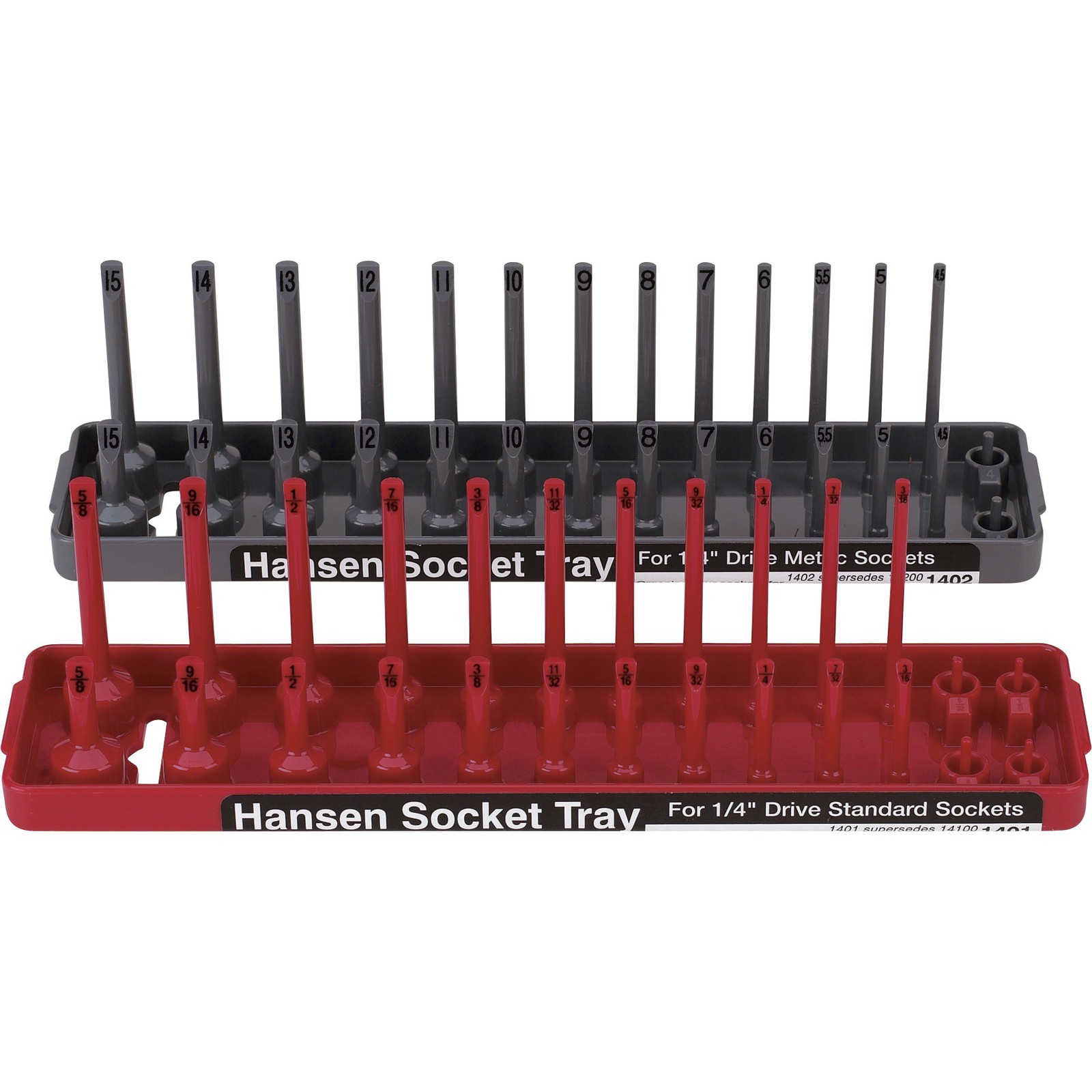 1/4in.-Drive 2-Pc. Socket Tray Set Hansen Global Socket Trays, 1/4in. Drive, 2-Pc. Set Northern Tool Item# 558547 Item Weight: 0.4100 lb(s) Manufacturer: Hansen Global MPN: Warranty: Lifetime Limited Warranty. Product Summary: 1/4in.-Drive 2-Pc. Socket Tray Set Payment Instructions You can pay us securely through eBay. All orders will contain an invoice/receipt. IMPORTANT: We will not honor requests to remove invoices or receipts from packages. No exceptions ON U.S. PURCHASES, Northern currently collects sales tax on purchases shipped to all states except: Alaska, Delaware, Montana, New Hampshire, Oregon Shipping Information This product will be shipped by Parcel. Parcel Shipping: Ground Shipped items must be sent to a physical address and cannot be sent to PO boxes. If a PO box address is submitted without a physical address it may delay your order. We cannot ship to APO/FPO boxes. Please note that we do not ship items on weekends or holidays. More information on shipping and handling times can be found on our Store Policies Page . Customer Care We want you to be satisfied with your purchase; please notify us by email if you have any concerns. Before you send an email message, please check our Help Section . We may already have an answer to your question! We are available to answer your email questions Monday through Friday from 8am - 3pm CST, excluding holidays. If your email is sent on a weekend, holiday or after business hours, we will respond to you on the following business day. Returns may be accepted on most items within 30 days of receipt of the item. All returns require authorization from us. Some returns are charged a 15% restocking fee. Please click the Shipping and Payments tab on this item for specific return information and full details. About Our Products Product Warranty: Lifetime Limited Warranty Warranty information and contact details can be found on our Store Policies Page. We are working hard to ensure that the information provided on the eBay product advertisements is accurate and up-to-date. We reserve the right to correct ad errors and/or omissions. Pricing and availability is subject to change without notice. No