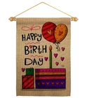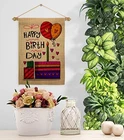 Happy Birth Day Garden Flag - Set Wood Dowel Celebration Birthday Cake Gift P...