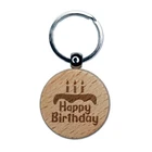 Happy Birthday with Cake Engraved Wood Round Keychain Tag Charm