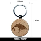 Happy Humpback Whale Engraved Wood Round Keychain Tag Charm