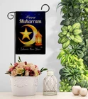 Happy Muharram Burlap Garden Flag Set Wood Dowel Celebration Islamic New Year...
