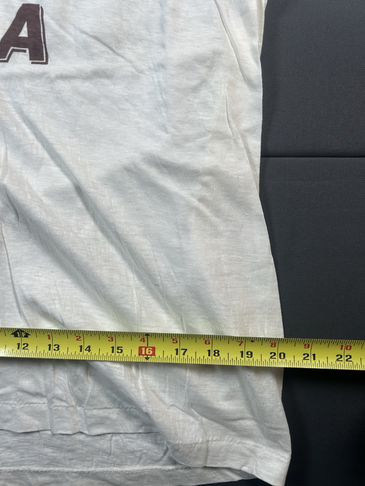 The product is a vintage white XL t-shirt featuring the classic logo of Hard Rock Cafe Roma Rome Italy. This men's regular fit t-shirt is perfect for fans of the brand looking for a stylish and comfortable addition to their wardrobe. The iconic design and accent of the logo make it a must-have piece for any Hard Rock Cafe enthusiast.