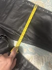 These Harley Davidson Black Studded Leather Pants for women in vintage size 6 are a stylish and edgy addition to any wardrobe. Made from high-quality leather, these pants feature a biker style with studded accents and come in a sleek black color. The lined interior adds a touch of comfort and durability, making them perfect for everyday wear or for adding a bold statement to your outfit. Perfect for those who love the biker theme and appreciate quality craftsmanship from a trusted brand like Harley Davidson. ** Please see photos and ask questions before purchasing.