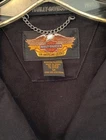 This stunning Harley-Davidson duster coat is a must-have for any motorcycle enthusiast. The black cotton denim fabric type is perfect for all seasons, with synthetic insulation to keep you warm in the winter and cool in the summer. The long-sleeve coat features a flames pattern and is 49 inches long, providing ample coverage for any casual or formal occasion. The coat also has a button closure, with a regular fit type that is perfect for women who want a comfortable and regular fit. The coat is unlined, with a bodywarmer feature that makes it suitable for travel, workwear, and party/cocktail events. The coat is a perfect representation of the Harley-Davidson brand, with a biker style that is sure to turn heads. Item is used and therefore shows signs of wear see photos for any details, measurements and/or flaws. Highly suggest that you clean the item before the first use to cleanse any spots or stains.