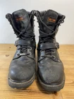 For all the Harley-Davidson enthusiasts out there, these Fury Trunk boots are a must-have. Made with high-quality leather, these mid-calf riding boots feature a solid black color with studded accents, a zipper, and the iconic Harley-Davidson logo. The boots have a round toe shape, a low block heel, and a standard shoe width, making them comfortable and stylish. The boots are perfect for travel, workwear, activewear, and casual wear. They have a padded lining, straps, and a rubber outsole for added comfort. These boots are versatile and can be worn in all seasons, including winter, summer, fall, and spring. They are a great addition to any biker's wardrobe and are perfect for long rides. No box