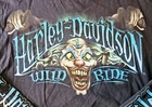 Nice clean Harley Davidson Shirt, no damage seen. Just wrinkles! Graphics still look amazing. Back says Hog Trail Eureka Springs, Arkansas Please review pictures before purchasing to better understand the condition of the item. Length 32.5" Chest 25" or 50" Sleeve Length 22.5" Sleeve Opening 4"-5" This Harley-Davidson Hanes Beefy-T shirt is perfect for any motorcycle enthusiast who loves killer clowns. The long-sleeved shirt features a crew neck and is made of cotton, making it comfortable to wear all year round. The shirt is 2XL in size and has a beefy fit, perfect for big and tall men. The blue shirt has a double-sided graphic print, featuring the iconic Harley-Davidson logo and a terrifying clown character. This vintage shirt was manufactured between 2000-2009 and has accents of the logo. The shirt is perfect for those who love the biker, rock, horror, punk, grunge, California, classic, gothic, Y2K, 20s, clown, Halloween, and USA theme. It was made in Honduras and is part of the Hanes Beefy-T product line.