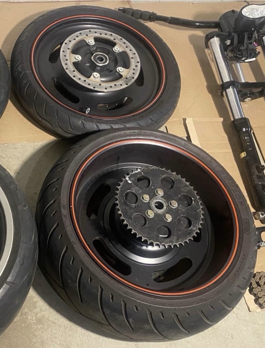 Harley Davidson Night Rod 2007: Swingarm black , axle , sproke rear , chain, wheel 240 rear , tire rear New , Handlebar Custom , headlights Custom , triple tree , forks , wheel front , tire front used ,axle front , brake disc 02 Front , brake disc 01 rear , handlebar mount , grip Custom . All the parts were disassembled from a 2007 Night Rod, it was to customize with custom parts, can you send photos of the bike to ensure that everything is in good condition for use. Comprador paga Taxes y envío .