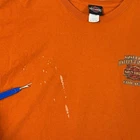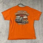 Thank you for your interest in this item! We do our best to provide the most accurate description so you know exactly what you’re buying. If there’s something we missed or you decide this piece just isn’t right for you, you’re welcome to return it within 30 days of delivery no questions asked. Every purchase supports our small business and will be handled with care, all orders ship within one business day and often the same day! Size: Men's Large (see condition) Color: Orange Condition: Good pre-owned condition, defects shown in photos; size tag reads XL but shirt fits like large - see measurements in photos *All clothing items have been properly cleaned per eBay standards