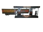 This custom balsa wood semi trailer model is the perfect addition to any Harley-Davidson collection. With a stunning 1:24 scale replica of this iconic motorcycle brand, this model is sure to impress anyone while in your personal collection. Crafted with balsa wood material, this stunning display is also lightweight. Ideal for toy and hobby enthusiasts, this model is sure to delight with its intricate details and expert craftsmanship. Whether you're a fan of motorcycles or simply appreciate the beauty of a well-made model, this custom balsa wood semi trailer is a must-have. This item was purchased from the estate of a gentleman in Columbus, GA who did photography for HD catalogs and websites in the late 1990s to early 2000s. A true one-of-a-kind piece for the perfect Harley enthusiast.