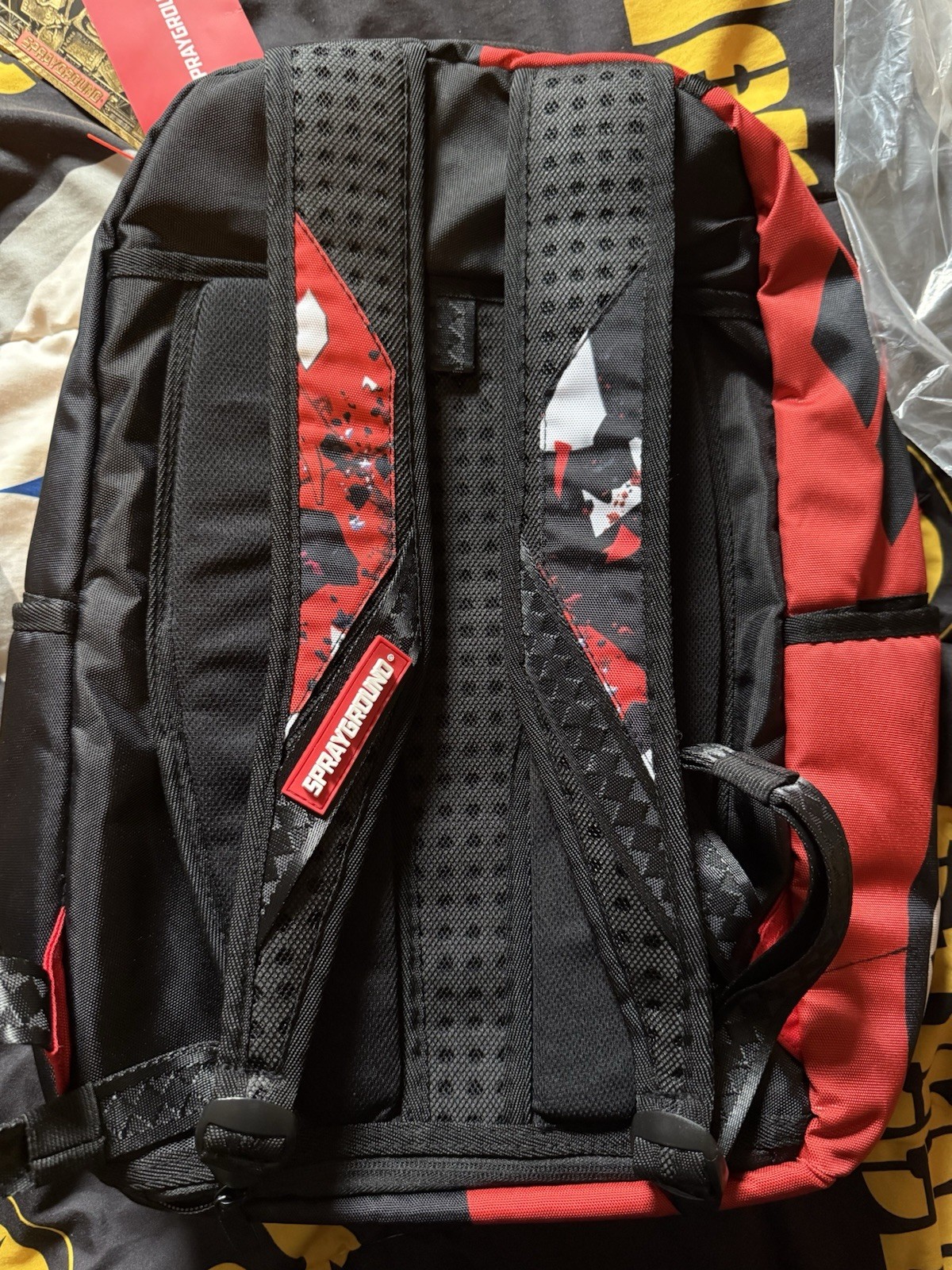 Brand New with all tags The Harley Quinn Backpack by Sprayground is a vibrant and practical accessory for both travel and casual occasions. With a width of 12 inches and a depth of 8 inches, this multicolor backpack features a polyester material and a fabric lining. The zip closure adds security to your belongings, making it a convenient choice for any adventure. Designed for unisex adults, this backpack is a must-have for fans of the iconic character, offering a fun and stylish way to carry your essentials.