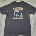 A striking Harley-Davidson graphic tee featuring a menacing clown design. This black t-shirt showcases a detailed print of a clown emerging from behind a wooden plank, complete with Harley-Davidson motorcycle logos. The back of the shirt displays a skull graphic with "Nags Head Harley-Davidson North Carolina" text. This unique piece is perfect for Harley enthusiasts and those who appreciate bold, edgy designs. The shirt also features a "Biker Built" logo on the inside collar. Color: Black Department: Men Type: T-Shirt Fit: Regular Sleeve Length: Short Sleeve Character: Clown, Biker, Skull Pattern: Graphic Print Character Family: Harley-Davidson, Clown, Biker Neckline: Crew Neck Features: Easy Care, Ring Spun Material: Cotton Keywords: Harley-Davidson, t-shirt, clown, graphic tee, biker, motorcycle, Nags Head, North Carolina, skull, men's clothing, vintage, rare, collectible all items have been cleaned and disinfected we stand behind all items we sell so please contact us if you have an issue with any order