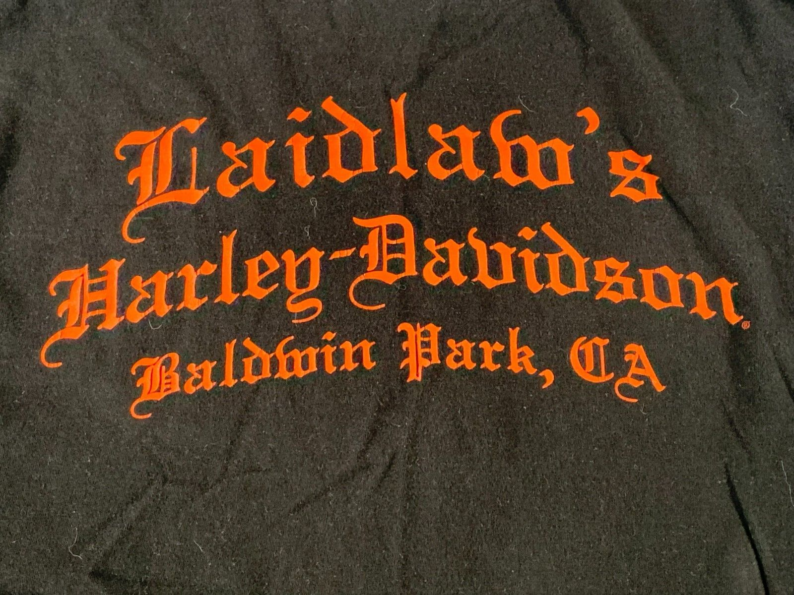 eBay Listing Template Our Listings Add to Favorites Feedback About Us Contact Us Harley-Davidson dealer t-shirt from Laidlaw's of Baldwin Park, CA! This pre-loved black tee features: • Classic Bar & Shield logo on front • Custom Laidlaw's dealer graphics on back • Premium cotton construction • Traditional crew neck • Double-stitched hems for durability • Size XL Minor normal wear from previous adventures - still plenty of miles left! Perfect for showing your H-D pride or adding to your collection. 💫 Follow our store for exclusive deals and join our VIP newsletter for secret savings! Browse our other premium Harley gear while you're here. SKU: 4170 Please check out my other items for sale! Shop by Categories Women's Clothing Women's Shoes Handbags Jewelry Men's Clothing Men's Shoes Hats Watches Useful Links Our Listings Add to Favorites Feedback About Us Contact Us Store Newsletter Add Store to your Favorites and receive email newsletters about new items and special promotions! Subscribe Now