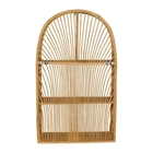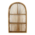 Evoking a relaxed, free-spirited ambiance synonymous with boho design, this arch-shaped wall shelf is a wall mirror in woven bamboo. Its inviting tan color emits a warmth that harmonizes with a myriad of home decor styles. Functionally equipped with three distinct tiers, this wall-mounted wonder offers abundant space for you to display cherished trinkets, potted plants, or your favorite reads. The ingeniously divided top tier enables a more organized and visually pleasing setup. Far from being just a floating shelf, this bamboo creation doubles as an exquisite piece of wall décor that infuses any room with an earthy yet elegant charm. Free Shipping Over $49.99* Details Harmony Arch Rattan Boho Tiered Wall Shelf - 28"H x 16.5"W x 6"D Product Description: Evoking a relaxed, free-spirited ambiance synonymous with boho design, this arch-shaped wall shelf is a wall mirror in woven bamboo. Its inviting tan color emits a warmth that harmonizes with a myriad of home decor styles. Functionally equipped with three distinct tiers, this wall-mounted wonder offers abundant space for you to display cherished trinkets, potted plants, or your favorite reads. The ingeniously divided top tier enables a more organized and visually pleasing setup. Far from being just a floating shelf, this bamboo creation doubles as an exquisite piece of wall décor that infuses any room with an earthy yet elegant charm.