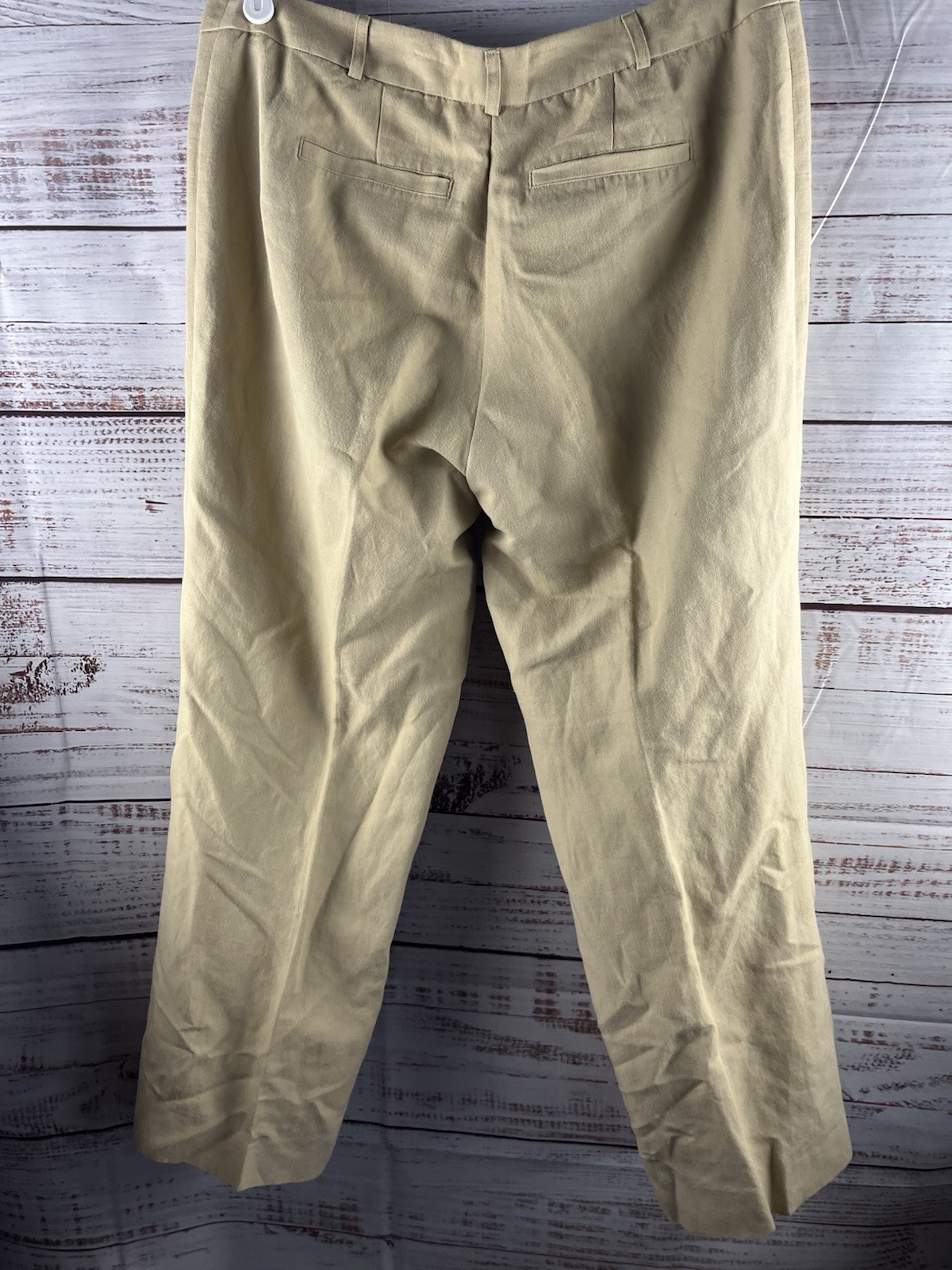 Elevate your casual wardrobe with these Harold's pants in a size 14. Made from a comfortable and breathable linen blend, these beige khakis feature a solid pattern and a flat front. The mid-rise and straight leg style create a timeless and flattering silhouette, while the zip closure ensures a secure fit. These pants are perfect for any casual occasion, whether you're running errands or meeting up with friends. The linen blend material keeps you cool and comfortable all day long, while the classic fit provides a relaxed and effortless look. Add these Harold's pants to your wardrobe today for a stylish and comfortable option that you can wear again and again.
