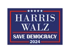 Harris Walz 2024 Yard Sign Double-sided Dimensions : 12x18 inches, perfect for visibility without overwhelming your yard or space. Material : Durable Coroplast, weather-resistant and designed for outdoor use in various climates. Design : Bold, legible text: "Harris Walz 2024" in prominent, eye-catching font. Secondary message: "Save Democracy" in a slightly smaller font to emphasize the campaign’s core message. Color scheme: Patriotic colors (e.g., red, white, and blue) to reflect the American spirit. Versatile Use : Ideal for lawns, gardens, or as a display in windows and public spaces. Easy Installation : Includes metal H-stakes for quick and secure placement in grass or soil. Purpose : Show your support for the Harris Walz 2024 campaign and the movement to protect democratic values.