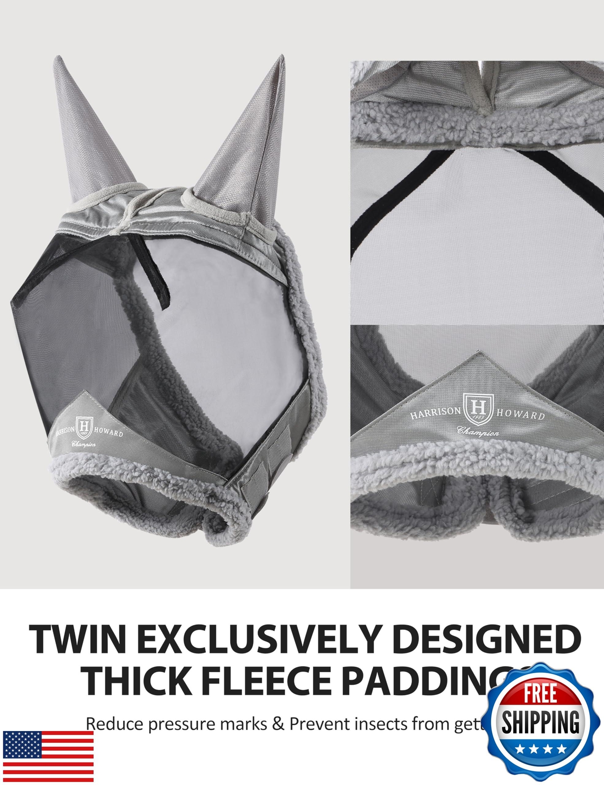 Harrison Howard Horse Fly Mask UV Protective Fine Mesh with Extra Wool Soft Touch on Skin Fly and UV Protection Moonlight Silver M Features Perfect Protection: Breathable mesh could effectively block out at least 50% of the harsh UV rays and shields your horse from summer nuisances. Great Airflow: The lightweight mesh allows great airflow in the heat of summer, helping your horse stay shaded and cool. Ultra Comfortable Wool: Reinforced darts and carefully positioned luxury synthetic wool padding lifts the mask away from the horse’s delicate eye area, giving the horse unhindered vision and exceptional all-day comfort. Forelock Opening Design: We carefully design an opening to help you to pull your horse's forelock through, which could also eliminate rubbing and damages on mane hair. Secure Fit Over Bridle: Easily and quickly attaches over the bridle. Adjustable touch-and-go straps ensure a safe closure for a proper fit while allowing the mask to stay in place. Shipping Free & Fast Shipping: We offer free shipping to most of the USA with a normal delivery time of 3-7 days. However, due to the current situation, additional delivery time (up to 3 weeks) may be required for some items. Alternative Carriers: We may use alternative carriers (e.g., USPS, FedEx, UPS) to ensure your package arrives safely and on time. Due to the use of multiple carriers, we are unable to provide a tracking number automatically. Handling Time: Orders are processed and shipped within 1-2 business days of receiving cleared payment. Shipping Restrictions: Shipping to Alaska, Hawaii, Puerto Rico, Guam, and other US territories may incur shipping charges or delivery restrictions. Please contact us before ordering, or your order can be refunded/cancelled. State Restrictions: Certain items may not be shipped to California due to state regulations. Contact for Tracking Updates: If you require tracking updates or have any concerns about the delivery of your order, please feel free to contact us, and we will be happy to assist you. Return Policy 30-Day Hassle-Free Returns: If you are not completely satisfied with your purchase, you can return the item for free within 30 days of receiving it for a full refund or exchange. Easy Return Process: Contact us, and we will provide you with a prepaid return shipping label and detailed instructions. No Restocking Fee: There are no restocking fees for returns. However, the buyer is responsible for return shipping costs if the return is not due to a seller's error. Refund Processing: Refunds will be processed within 1 business day of receiving the returned item in its original condition. Payment We accept all major credit cards, PayPal, and Apple Pay for your convenience. Your payment information is secure and encrypted to ensure a safe and seamless transaction. Please complete your payment within 3 days of purchase to avoid any delays in shipping. Feedback Your feedback is extremely important to us. We strive to provide the best products and customer service possible. If you are satisfied with your purchase, please take a moment to leave us a positive review. If you have any concerns or issues with your order, please contact us before leaving negative feedback. We are committed to resolving any problems and ensuring your satisfaction. Contact Us If you have any questions or concerns, please feel free to reach out to our customer support team. You can contact us through the eBay messaging system. We are available Monday to Friday, 9:00 am to 5:00 pm EST, and we will do our best to respond to your inquiry within 24 hours. Thank you for supporting our small family business!