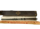 Has a purple glass tip on the bottom, makes it look extra cool. Looks like its carved wood, but its actually resin. 13 1/2" long, has a nice weight to it. Will make a great Halloween cosplay piece. Exclusive From geek gear (UK).