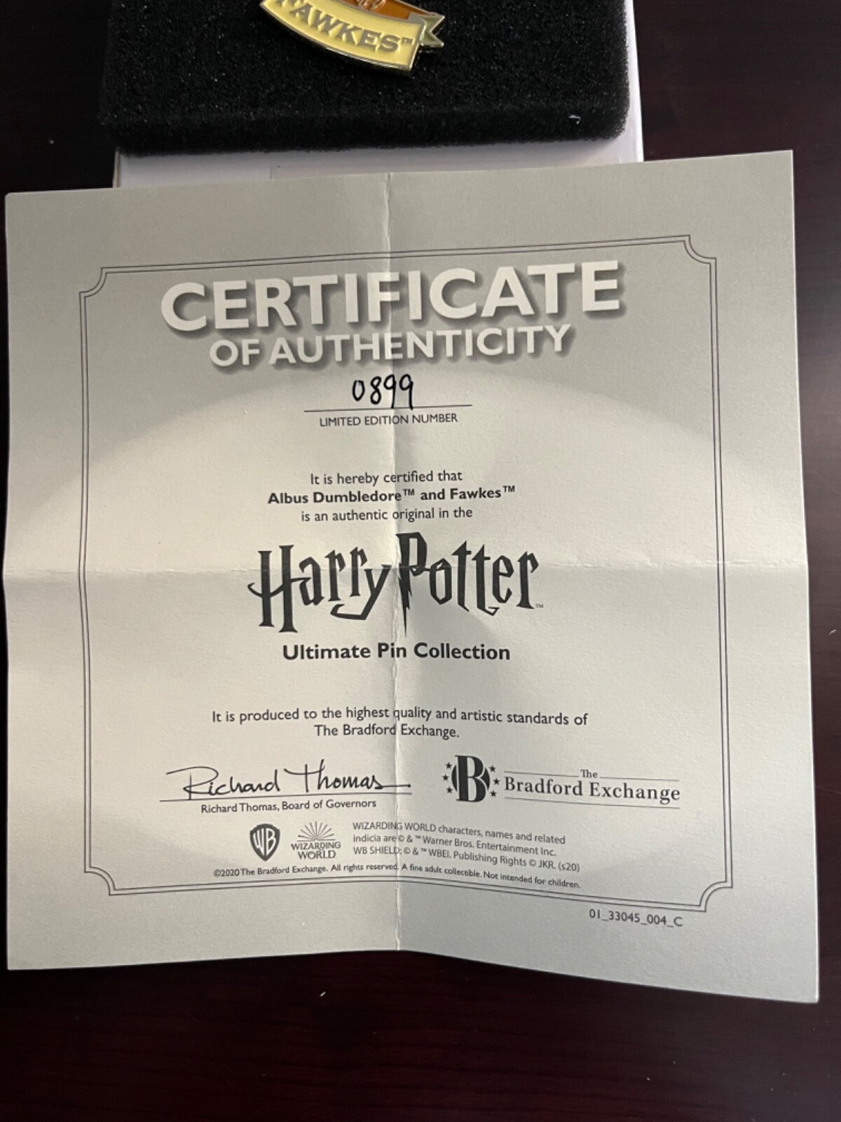 This stunning limited-edition Dumbledore and Fawkes pin set is a must-have for any Harry Potter collector! The intricate detailing captures the magic perfectly, and the included COA adds authenticity. As part of a rare 2020 Bradford Exchange release, #0899 makes this set even more special. The craftsmanship is exceptional, and it’s a beautiful tribute to one of the series’ most beloved characters. A fantastic addition to any collection—highly recommended for fans and collectors alike!