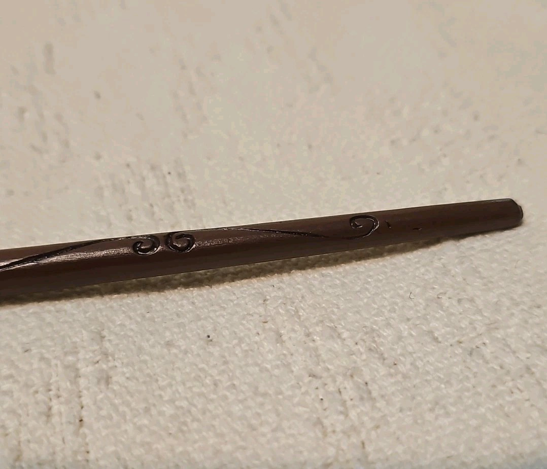 The product is a Harry Potter Death Eater replica wand, representing the fantasy genre and the Harry Potter franchise. It is a collectible item that is designed to resemble the wands used by characters in the Harry Potter series, specifically the dark wizard followers known as Death Eaters. The wand is not a modified item and is an authentic replica from the Harry Potter universe. NO BOX