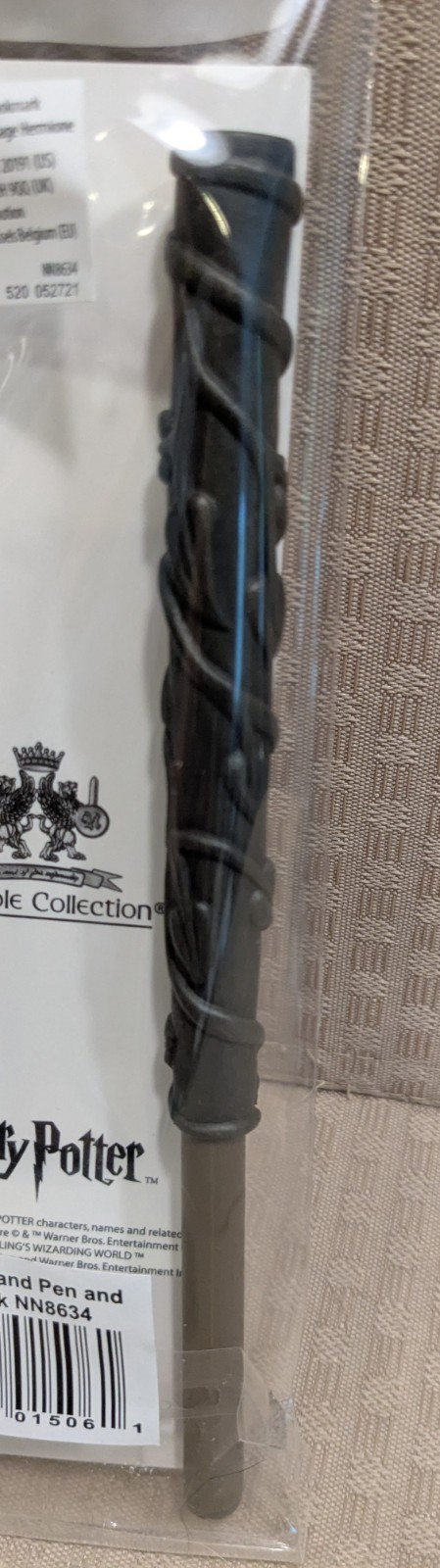 🪄✨ Take a little piece of Hogwarts with you wherever you write! This enchanting set from The Noble Collection includes a wand-shaped pen inspired by Hermione Granger’s very own wand—perfect for jotting notes, drafting spells, or signing important Ministry documents. The coordinating bookmark features Hermione herself, ready to save your place in any book (magical or Muggle). 🌟 Magical Details : Official Wizarding World collectible by The Noble Collection Hermione wand pen with detailed sculpting for a true wand-like feel Character bookmark with colorful Hermione artwork Brand new – never opened, straight from the wizarding shelves Perfect for fans, readers, or collectors seeking functional magic Great for journals, Hogwarts homework, or everyday writing 🪄 Whether you’re studying for O.W.L.s or just making a grocery list, this set adds a touch of Hogwarts charm to every word you write.