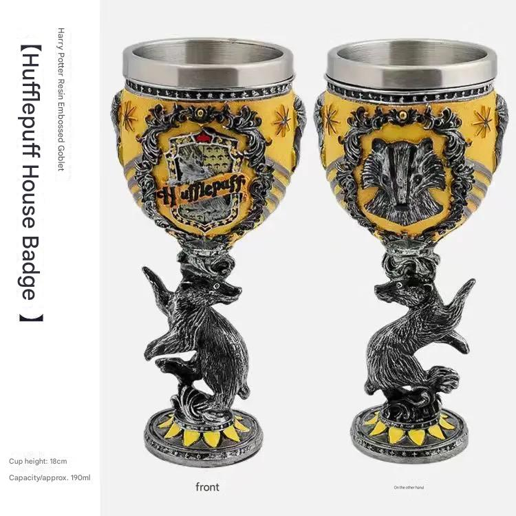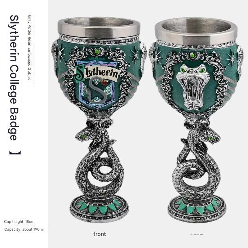 Harry Potter Hogwarts House Goblet – Decorative Resin Wine Glass (190ml) Celebrate the magic of Hogwarts with these Harry Potter House Crest Goblets – a stunning collectible and drinkware piece inspired by the legendary four houses: Gryffindor, Hufflepuff, Ravenclaw, and Slytherin . Perfect as a gift, party accessory, or magical addition to your collection! 🧙♂️ Product Features: Official House Designs – Choose from Gryffindor, Slytherin, Hufflepuff, or Ravenclaw , each featuring detailed house emblems and sculpted mascots (lion, snake, badger, raven) Premium Materials – Crafted from resin with a stainless steel inner lining , suitable for both hot and cold beverages Impressive Details – Embossed house badge on one side, animal mascot on the other, with intricate scrollwork and vibrant colors Multi-Colored Finish – Eye-catching, hand-painted design makes it a standout décor piece 📐 Specifications: Condition: Brand New (Sealed in original packaging) Material: Resin outer with stainless steel inner cup Capacity: Approximately 190ml Cup Height: 18 cm Shape: Round Weight: 0.7 kg Glass Type: Art Glass / Cocktail Glass Beverage Type: Suitable for both hot and cold drinks Style/Theme: Harry Potter, Fantasy, Hogwarts Manufacturing Year: 2024 Made in: China 🎁 Perfect For: Harry Potter fans & collectors Christmas & birthday gifts Themed parties and cosplay events Decorative display in your home bar or bookshelf Raise your goblet and toast to your house pride – whether you’re bold like Gryffindor , wise like Ravenclaw , loyal like Hufflepuff , or ambitious like Slytherin , there’s a magical chalice waiting for you!
