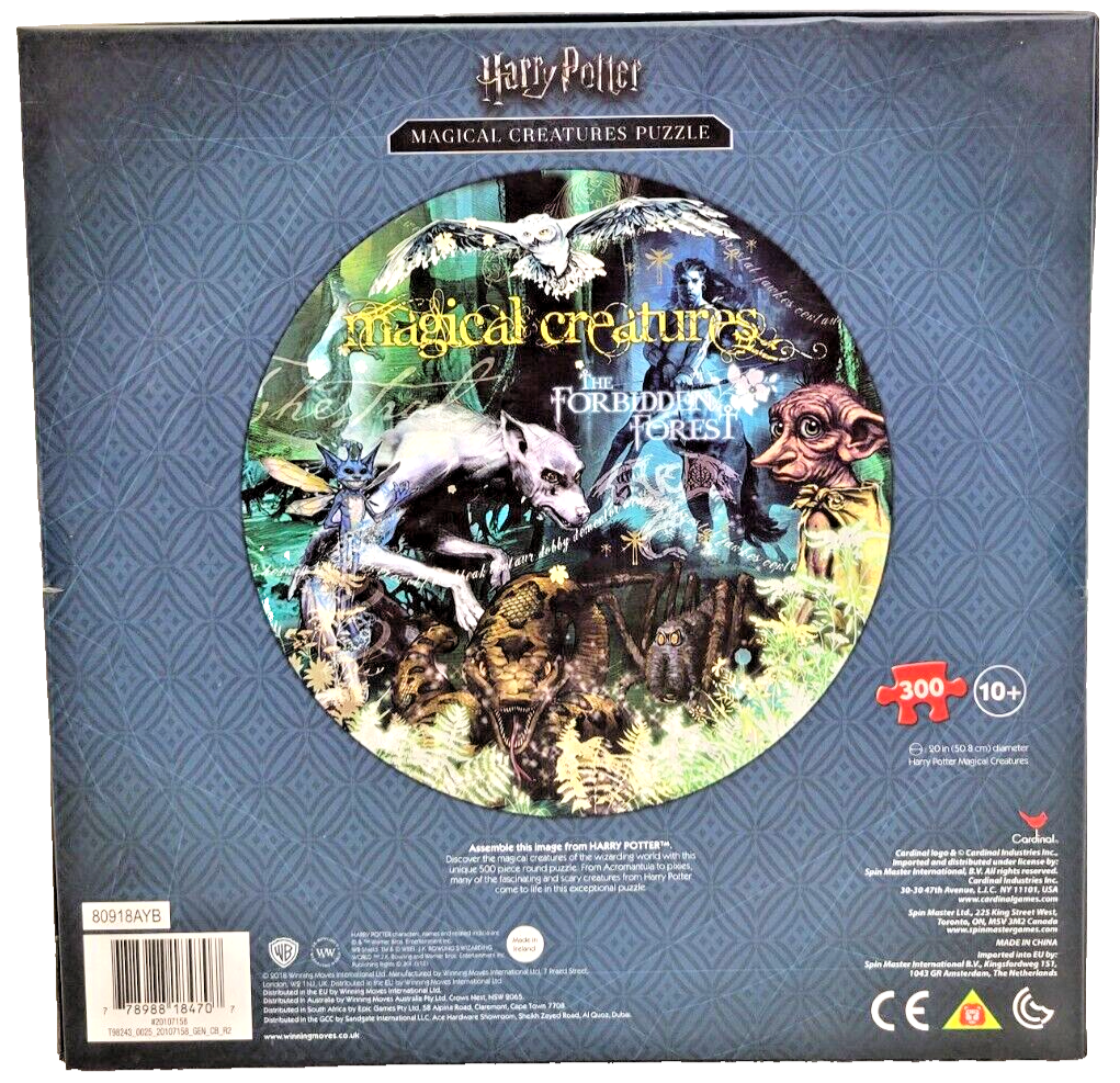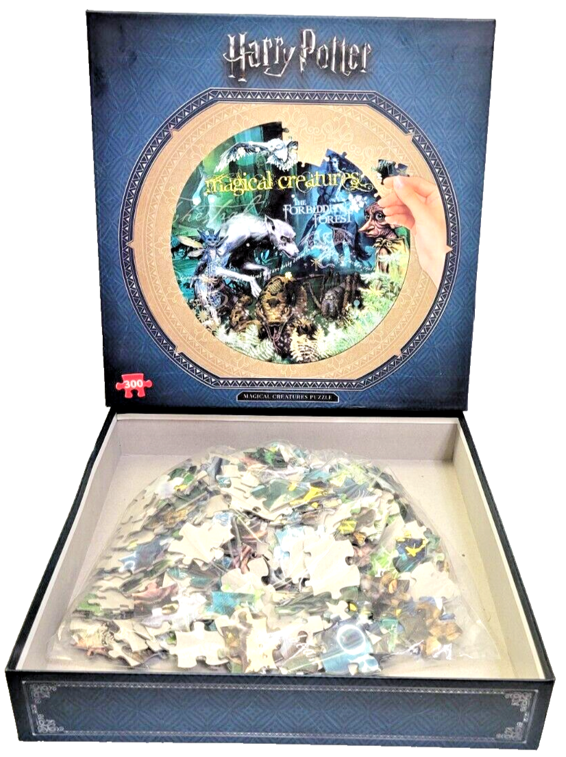 Step into the wizarding world with this 300-piece jigsaw puzzle featuring magical creatures in The Forbidden Forest from Harry Potter. The puzzle is complete and in excellent shape. It is made of high-quality cardboard material and has a 20" diameter. The puzzle pieces have been stored in a smoke-free household and the recommended age range is 10+. This puzzle is perfect for fans of the Harry Potter franchise and those who love solving puzzles. The puzzle includes magical creatures from the Harry Potter series and is a great addition to any collection. Doing puzzles has some hidden benefits . Excellent qualities : Cultivate concentration, patience, and temper your will Movement development : Train hand-eye coordination and precise small movements Spatial intelligence : Improve visual discrimination of colors and shapes Critical thinking ability : Understand the relationship between parts and the whole, and draw inferences from one example to explore the future Relaxes your mind : Relieve work pressure and release yourself Brain development : Enhance memory and may help prevent or slow brain degeneration Each item we ship is carefully packaged to prevent any damage and is shipped immediately with tracking.