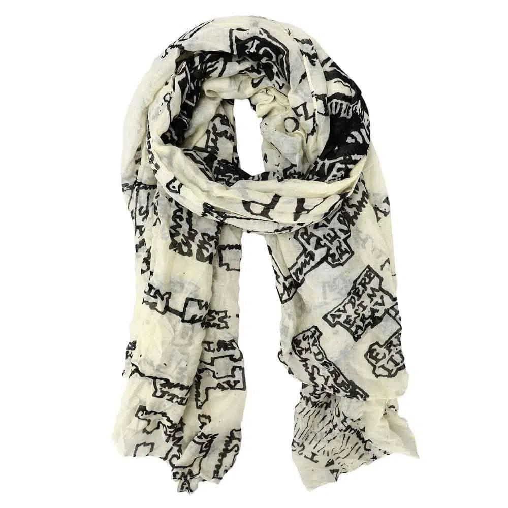 Harry Potter - Maruader's Map Scarf - Bioworld Condition: New Step into the magical world of Harry Potter with the Marauder's Map Scarf from Bioworld. This beautifully crafted scarf features a professional print of the iconic Marauder's Map, adding a whimsical touch to your wardrobe. Whether you're exploring Hogwarts or heading out for an adventure of your own, this scarf will keep you cozy and stylish. Made from high-quality viscose, the scarf is lightweight and breathable, making it ideal for the warmer months of spring, summer, and fall. The vivid, detailed design of the Marauder's Map ensures that any Harry Potter fan will appreciate its attention to detail. The scarf is soft and comfortable, perfect for adding a magical flair to any casual or themed outfit. The Harry Potter Marauder's Map Scarf is designed as a one-size-fits-all accessory, making it a versatile piece for fans of all ages. Easy to care for, simply hand wash in cold water and lay flat to dry to maintain its quality. As an officially licensed product, you can be confident in its authenticity and craftsmanship. Whether you're a devoted Harry Potter fan or searching for a unique gift for someone who loves the wizarding world, the Marauder's Map Scarf is an essential addition to any collection. Wear it proudly and showcase your love for one of the most beloved stories of all time!