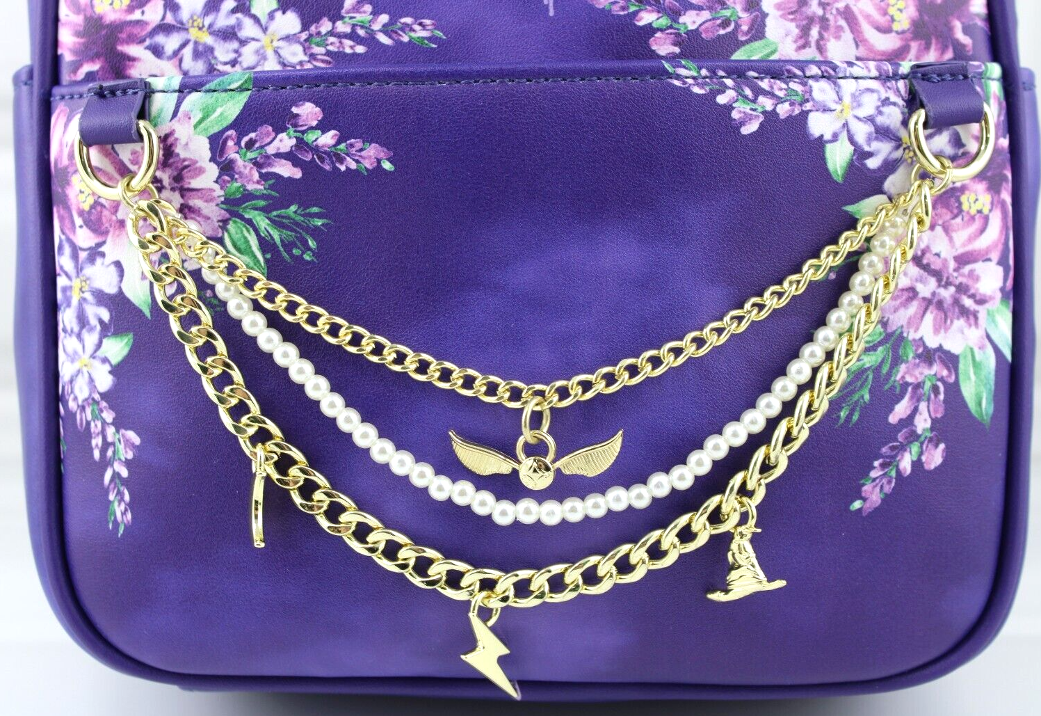 This mini backpack is absolutely magical! The gold charms and faux pearls add such a stylish, witchy vibe, and the Hogwarts Castle print is crisp and full of detail. The adjustable straps make it comfy to wear, and the multiple pockets (plus the cute purple lining!) are super practical. Perfect for any Potterhead who wants to show off their house pride on the go—definitely feels like official merch, and the faux leather looks great. Love the Golden Snitch and Lightning Bolt charms!
