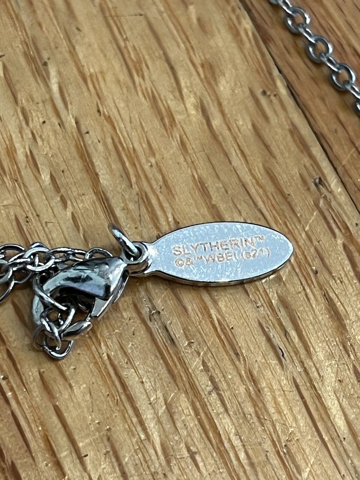 The Harry Potter SLYTHERIN Necklace features a silver tone chain adorned with a stone and crystal pendant, making it a stylish accessory for fans of the Slytherin house. The necklace is designed in a chain style, with the main stone being a green crystal, adding a touch of elegance to the overall aesthetic. Perfect for adding a touch of magic and sophistication to any outfit, this necklace is a must-have for Harry Potter enthusiasts and those who appreciate unique and stylish jewelry pieces.