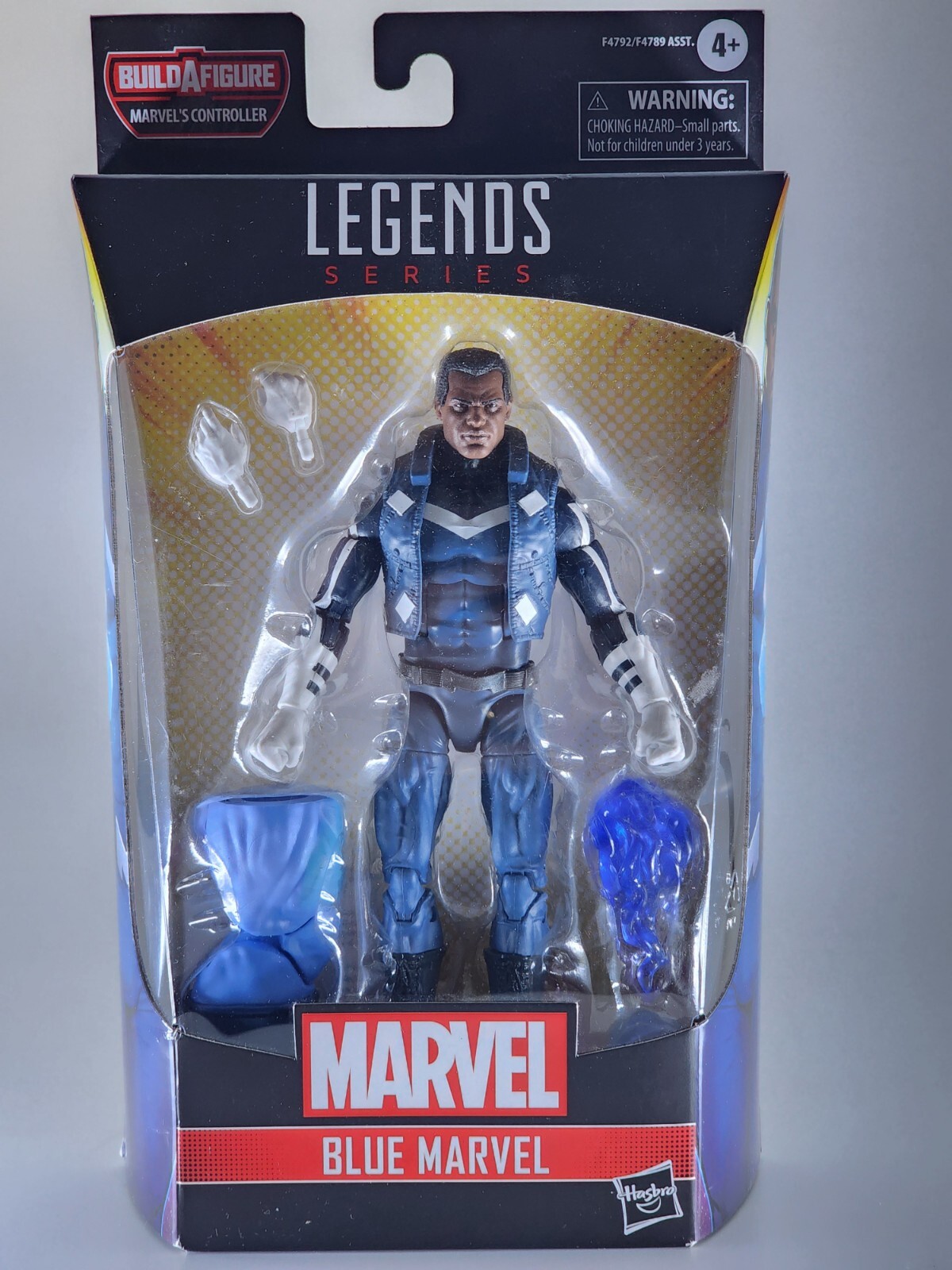 The Hasbro Marvel Legends Series Blue Marvel Action Figure is a 6-inch plastic figure from Marvel's Avengers franchise. This collector's edition features Blue as the character, part of the Marvel Universe series. It is a limited edition item with an adjustable design and comes boxed. The figure is part of the Controller Build-A-Figure series and is suitable for ages 4 years and up. Loc. S1