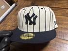 Price lowered for the weekend. Price will be going back up Monday. Don’t miss your chance to add this one to your collection. 100% authentic and brand new. Never worn or tried on in a size 7 3/4. No hat club pin included. This hat shows a green satin under visor and the classic Yankees pinstripes. Add this rare cap to your collection today.