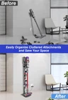 【Compatible Models】: This vacuum stand is compatible with Dyson Gen5 Outsize, V15 Detect, V12 Detect Slim, V11, V10, V8, V7, and V6 cordless vacuum cleaners. It provides a simple and efficient way to store your vacuum and accessories. Note: The vacuum, accessories, and charging dock shown in the images are for illustration purposes only and are not included. This listing is for the vacuum stand only 【Stable Design & Premium Material】: Designed with a HEAVY-DUTY BASE and HIGH-QUALITY METAL FRAME, this vacuum stand ensures exceptional stability. The curved flat iron construction prevents swinging, keeping your Dyson vacuum securely in place 【Easy Assembly & Space-Saving】: This freestanding vacuum stand is easy to assemble with included tools and instructions. Its compact design fits into tight spaces, helping you save room while keeping your vacuum and accessories organized 【Efficient Organization & Hidden Cord Design】: Featuring 4 hooks for storing accessories, this stand keeps all your vacuum tools neatly organized. The hidden power cord design runs the cord through the stand, creating a clean and clutter-free look 【Perfect Gift Idea】: This premium vacuum stand is an ideal gift for family, friends, or colleagues. It's a thoughtful choice for occasions like Father's Day, Mother's Day, birthdays, Christmas, or housewarming celebrations, helping them stay organized and save time