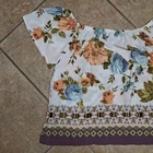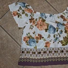 From Lens: image shows a white blouse with a floral print and a decorative border, and could be described as having a 'cottagecore' or 'romantic' aesthetic according to fashion blogs and articles . Blouse Style The blouse has an off-the-shoulder neckline and short, puffed sleeves . It could be classified as an off-the-shoulder blouse with puff sleeves, based on terminology commonly used in fashion to describe similar clothing items . The term “peasant top” is also used to describe blouses with similar features. Keywords and Aesthetic Keywords such as 'floral', 'off-the-shoulder', 'puff sleeve', 'boho', and 'peasant' can be used to describe the blouse . These keywords accurately reflect the visual characteristics of the blouse and are commonly used in fashion terminology, according to Authority Ventures . The blouse's aesthetic could be described as 'cottagecore' or 'romantic', as it incorporates elements such as floral prints and puff sleeves that are often associated with these styles, according to fashion blogs and articles . Sources