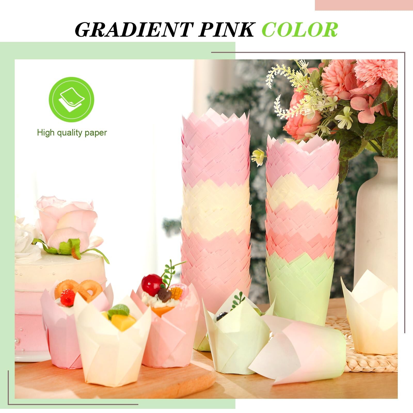 Havawish 500 Counts Spring Easter Tulip Cupcake Liners Flower Baking Cups Muffin Liners Greaseproof Cupcake Wrapper Tulip Paper Baking Cup for Wedding Birthday Baby Shower Party(Classic Style) Product Details Style: Classic Style Brand: Havawish MPN: YOF-Havawish-339 UPC: Does not apply EAN: Does not apply Package Dimensions: 12.36 x 6.3 x 2.99 inches Item Weight: 1.12 pounds Manufacturer: Havawish Country of Origin: China Item model number: YOF-Havawish-339 Date First Available: October 12, 2024 Standard Size: our gradient tulip cupcake liners are about 2.17 inches at the low point and to 3.15 inches at the high point with capacity of 3 oz, making it the good choice for baking, the top diameter is approx. 3 inches/ 7.6 cm and the bottom diameter is 1.97 inches in the standard size to fit into a standard muffin or cupcake pan Sufficient Quantity: you will receive 500 pieces of tulip cupcake liners in 5 different designs, with 100 pieces of each type; This variety allows you to choose liners that match with the theme or occasion of your party or event, whether in a wedding reception or other celebration Elegant Cupcake Wrappers: featuring gradient color and tulip forms, these cupcake liners are lovely and clean, adding a classic and professional touch to any food presentation; Unlike regular cupcake liners, they are appropriate for party table decorations and may make food look more elegant and appetizing while also making a deeper impression on friends or guests Quality and Reliable: our tulip baking cups are made of greaseproof paper, safe and unscented, easy to peel off, convenient to use, a good tool for you to make muffins Extensive Application: these tulip cupcake liners for baking are ideal for daily and for large events; They are suitable for birthday celebrations, bridal showers, weddings, garden baking parties, Baptismal Days, and other festivals; They can also be applied for Halloween parties, Thanksgiving, Christmas gatherings, and other celebrations Features: These tulip cupcake paper cups will satisfy your need to create a variety of cake and muffin flavors, while also giving your baked goods an elegant look. These baking cupcake liners are composed of quality greaseproof paper that won't easily break or fade, are safe to use, and doesn't smell bad, all of which will make using them enjoyable. Specifications: Material: greaseproof paper Color: gradient color Size: about 3 oz Package includes: 500 x Tulip cupcake liners Notes: Manual measurement, please allow slight errors on size. The color may exist a slight difference due to different screen displays.
