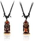 Hawaiian Tiki Resin Protection Amulet Lucky Pendant Necklace Cute Caved Satue Adjustable Rope Chain Handmade Vintage Jwelry for Mens Boys Women Girls