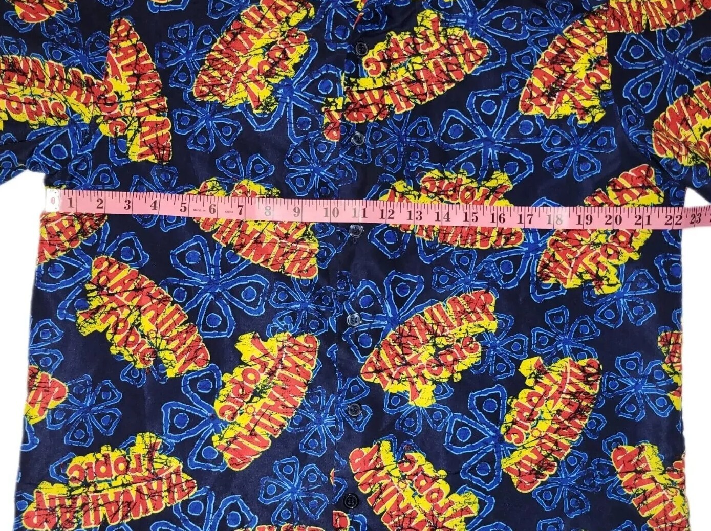 Hawaiian Tropic Blue Yellow Red Logo Short Sleeve Button Up Shirt Men's Size Medium. Blue, Red & Yellow in Colors. 100% Polyester (Please see all photos for approximate measurements) Please also be sure to double-check your own measurements before ordering. (FREE SHIPPING) Clean Like New Pre-owned Condition With The Exception of Some Fading On Material Tag. (Item has been washed) Feel free to ask any questions you may have Take a look at our other items. Our inventory grows daily.
