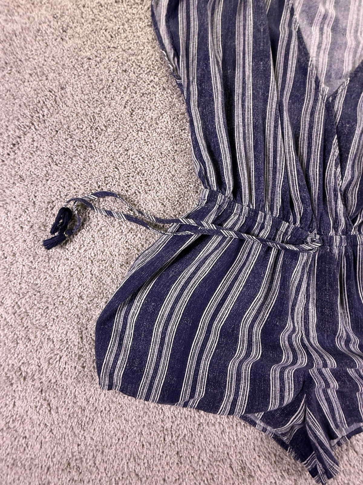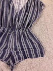 The Hawaiian Tropic Women's Romper in blue and white stripes is a stylish and comfortable one-piece outfit designed for women in size XL. Made from a polyester blend, this pullover romper features a regular fit, making it a versatile and easy-to-wear option for any tropical-themed occasion. Machine washable for convenience, this romper from the Hawaiian Tropic brand is perfect for adding a touch of island-inspired flair to your wardrobe. 5955