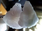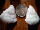please save this seller and see more of our vintages!!! 1 pair. true htf actual old vintage natural a grade jade earrings, older circa mcm 1950s 60s Hawaii find i got with a few others i may list in future all were clip older. timeless motif with unusual white jade color and a hint of slighly lavender and green in an area, a beautiful and rare true vintage stone to behold, large at a 1 1/4" tall carving, unisex and great for anyone who loves lucky charms tattoos or spiritual fashion. old is new again, and this one is cool. shown in dappled sunlight through trees and a curtain, item doesn't have those spots, clearest photos we can offer so you can see the natural jadeite jade, ty, have a great day. inventoryKarmoireD1