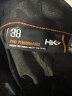 HK Pro Performance Straight Leg Men's Dress Pants in size 38x30. These black pants by Hawke & Co feature a solid pattern with a zip and button closure. They have a flat front design with a mid-rise waist and a regular fit. The pants are made for men's wear, with a straight leg style and a 30-inch inseam.