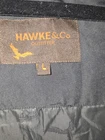 The Hawke & Co. Sport Performance Men’s Black Down Blend Winter Puffer Jacket in size L is a stylish and functional outerwear option perfect for various occasions like travel, parties, casual outings, work, and business meetings. Made with a durable nylon outer shell and lined with cozy nylon, this medium weight jacket provides warmth with its 300 warmth weight rating. The jacket features a stand-up collar, zip closure, and multiple pockets for practicality. Additionally, it is water resistant and wind-resistant, making it ideal for winter and fall seasons. The sleek black color and logo accents add a touch of sporty style to this versatile puffer jacket from the Hawke & Co. brand.