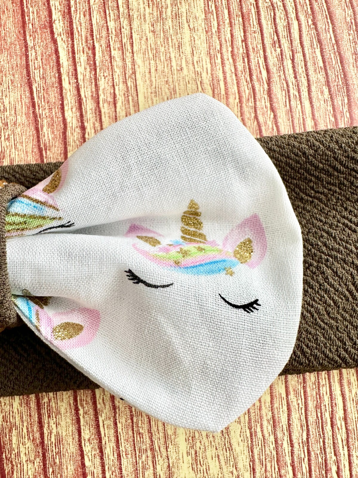 Brand New Handmade Girls Headbands with a Beautiful Matching Bow Headband fits a 3 To 5 Years Old Girl or a Head Circumference of 20 inches Fabric: Headband - Bullet Fabric / Stretchy Fabric Bow - Cotton Fabric Theme: Unicorn These Headbands are beautiful for any occasion or as a nice gift. Ready to Ship **All Sales are Final. No Returns or Exchanges will be accepted** If you have questions, send me a message. Thank you for your Visit!