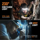 Bright & 230°Wide Beam: Featuring high bright COB and LED light source, this wide beam headlamp offers a 230°wide-angle illumination and 1200Lumens output for maximum brightness. Head Torch has a extra bright LED spot light suitable for a variety of scenarios to meet your various need, for example, night walking, running and biking. 5 Light Modes: The LED headlamp has 5 white light modes: COB High Mode, COB Low Mode, LED High Mode, LED Low Mode and Strobe Mode. In any other mode, long press the On/Off Button to transform the strobe mode, then the LED and COB light will flash at the same time. Rechargeable Batteries: This rechargeable headlamp build in large capacity rechargeable batteries, and micro USB to USB charging cable included. Rechargeable Headlight Flashlight equipped with upgraded input port for a faster charging experience. Charging function not only saves the cost of replacing batteries but can be recycled. Motion Sensor: LED head lamp has a high-quality motion sensor battery. When the sensor function switch is turned on, you can turn on/off the light by just waving your hand within the sensor function range. Whenever and anywhere the switch of lightbar headlamps can bring you convenience and protect the eyes of others whether you are hiking, camping, or mountaineering. Lightweight & Adjustable Headband: The led headband is made of ABS and silicone, it is soft and comfortable, just only 3.5 ounces. It's possible to fold but not affect the use, light weight and small size design can easily fits in your pocket. With soft and washable headband of light band headlamp fits adult. Indoor and outdoor activities used in the waterproof headlights no pressure, especially car repair, DIY work or , etc.