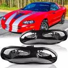 Feature High quality generic branded lights that are identical to OEM lights. Safety and Durable. DOT/SAT approved for street legal. Safety & Fashion. High grade ABS plastic. For toughness, impact resistance, and heat resistance. Condition: 100% Brand New and High Quality Material: ABS Plastic Housing / Polycarbonate Lens Color: Black Housing + Clear Lens High Beam Bulb Type: HB3 9005 (bulb NOT included) Low Beam Bulb Type: HB4 9006 (bulb NOT included) Fit for: for 1998-2002 Chevy Camaro Packing list: 1 Pair of Headlights (Driver & Passenger Side)