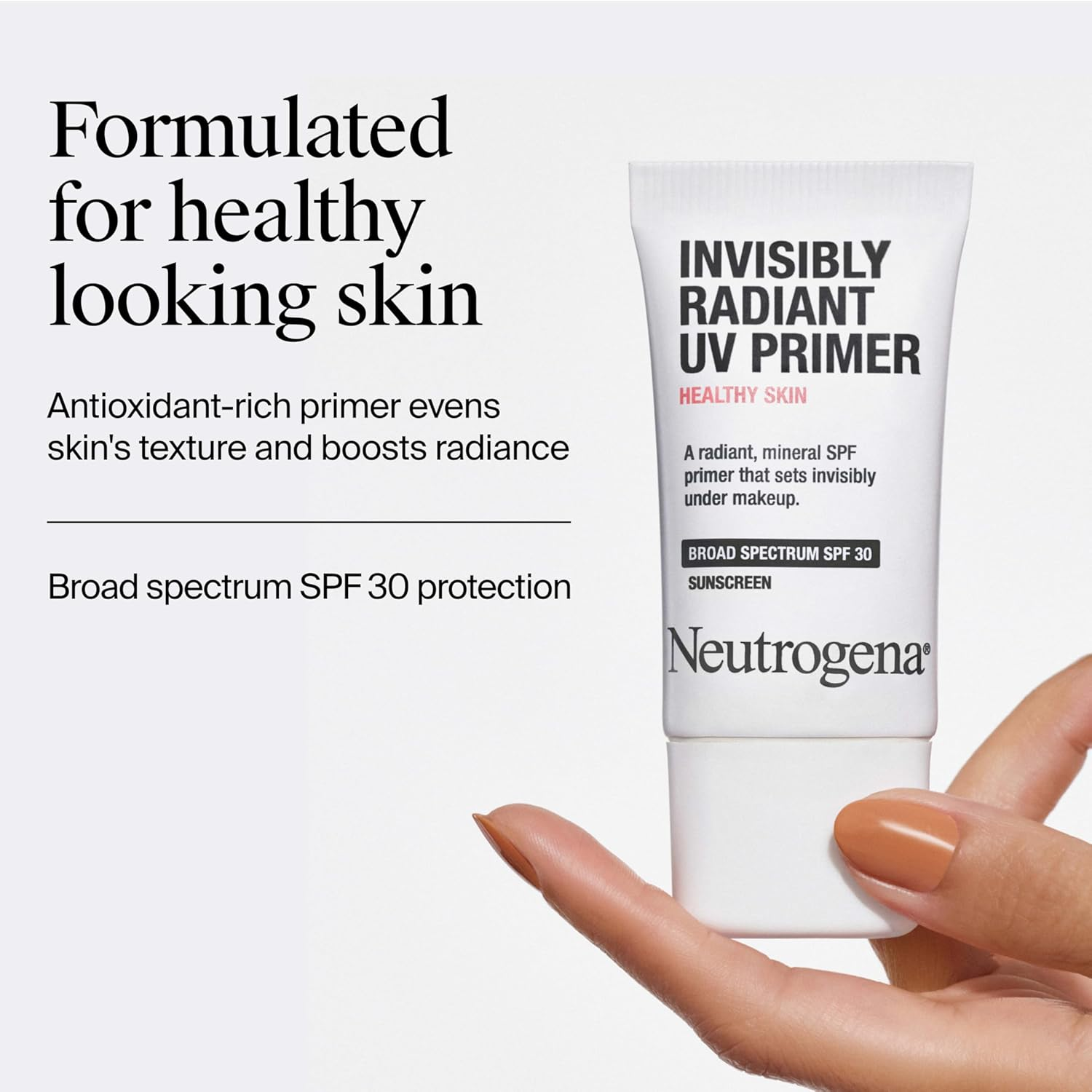 Healthy Skin Invisibly Radiant UV Face Primer with SPF 30, Mineral Sunscreen Makeup Primer, Broad Spectrum SPF 30, Suitable for All Skin Types, 1 Fl. Oz Neutrogena Healthy Skin UV Face Primer with SPF 30 is a face sunscreen and makeup primer that evens skin tone and texture while enhancing radiance and creating a smooth, flawless base This makeup primer with SPF wears invisibly under makeup, providing sun protection with a weightless finish; its antioxidant formula smooths skin and boosts glow while helping prevent early aging Face sunscreen with primer benefits: evens complexion, minimizes dullness, and protects against UVA/UVB rays; ideal for daily use on all skin tones and types including sensitive skin Lightweight, fast-absorbing makeup primer with SPF 30 doubles as a radiant skin booster and face sunscreen; dries clear with no white cast or oily feel for an effortless daily base Apply this SPF primer daily before makeup or wear alone; shake well, apply a thin layer over entire face, blend in with fingers, and wait 30 seconds before layering foundation or concealer Experience a lightweight makeup primer with SPF that protects and perfects. Designed for all skin types and tones, including sensitive skin, this face sunscreen primer quickly absorbs and dries clear—no white cast or greasy residue. Powered by antioxidants, this radiant skin formula helps even skin’s texture and tone while delivering broad spectrum SPF 30. With daily use as directed, it helps reduce the risk of early aging and skin cancer caused by sun exposure. Use on its own or as the first step in your makeup routine. Shake well before use. Apply a thin layer evenly over your entire face and blend with fingertips. Let set for 30 seconds before applying makeup for a smooth, glowing base. Dimensions 1.85 inches x 0.75 inches x 4.13 inches. Weight: 1.44 oz Specifications Product Dimensions 0.75 x 1.85 x 4.13 inches; 1.44 ounces Country of Origin USA Product Benefits Radiant Skin, Even Toning Coverage Medium Skin Type All Item Form Cream Shipping: Shipped from the USA. Fast delivery within 2–3 days. Payment: PayPal, credit card, bank transfer. Returns: 30-day free return – we cover the shipping cost. Quality: Made in Europe/USA/China. No customs fees. VAT invoice on request. Feedback: You’ll automatically receive positive feedback after payment.