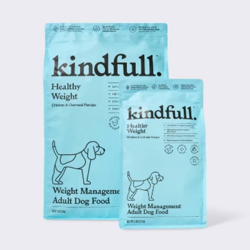 Important Note for Our Valued Customers: To offer you the best prices with free shipping, we occasionally experience shipping delays. If this happens, we’ll notify you immediately, issue a full refund, and invite you to place a new order at your convenience. To keep costs low, we sometimes reuse branded packaging boxes for shipments—we appreciate your understanding if you receive your order in repurposed packaging. Rest assured, all products we sell are 100% brand new, unopened, and freshly manufactured, including pet food and human-grade items, with a minimum 8-month shelf life remaining. If any issues arise, please contact us first—we’re committed to resolving them quickly. If you’re not completely satisfied, we offer a full refund with no hassle. Thank you for your trust and support! Description Check out the 5lb Chicken and Oatmeal Recipe Healthy Weight Dry Dog Food from Kindfull™. This natural dog food has added vitamins, minerals and other trace nutrients making it a nutritious and tasty option for your furry friend. It's low calorie for weight management and has high-quality protein to support lean muscle. It has L-Carnitine to support fat metabolism and Fiber to support healthy digestion. Kindfull™: Creating a world of good for your pet. Satisfaction guaranteed. highlights 5lb chicken and oatmeal recipe healthy weight dry dog food Low calories for weight management High-quality protein to support lean muscle L-Carnitine to support fat metabolism Fiber to support healthy digestion Weight management adult dog food No wheat, corn or soy Real chicken is first ingredient No artificial colors, flavors or preservatives No by-product meals Veterinarian-guided nutrition Made in the U.S.A with ingredients from around the world Amount : % Daily Value* Crude Protein (Min) 25% Crude Fat (Min) 7% Crude Fiber (Max) 10% Moisture (Max) 10% Calcium (Ca) (Min) 1% Phosphorus (P) (Min) 0.6% Zinc (Min) 100mg/kg Selenium (Min) 0.35mg/kg Vitamin A (Min) 5000IU/kg Vitamin E (Min) 50IU/kg Omega-6 Fatty Acids (Min) 1% Omega-3 Fatty Acids (Min) 0.05% Chondroitin Sulfate (Min) 400mg/kg Glucosamine (Min) 300mg/kg L-Carnitine (Min) 100mg/kg * Percentage of Daily Values are based on a 2,000 calorie diet. Ingredients: chicken, chicken meal (source of glucosamine and chondroitin sulfate), oatmeal, ground grain sorghum, barley, dried peas, dried plain beet pulp, canola meal, pea fiber, suncured alfalfa meal, natural flavor, chicken fat (preserved with mixed tocopherols), turkey meal, powdered cellulose, dicalcium phosphate, potassium chloride, salt, flaxseeds, yeast culture, taurine, dried chicory root, dried blueberries, dried carrots, dried cranberries, citric acid (preservative), mixed tocopherols (preservative), dl-methionine, iron amino acid complex, zinc amino acid complex, vitamin e supplement, ferrous sulfate, choline chloride, zinc oxide, l-carnitine, copper amino acid complex, copper sulfate, sodium selenite, manganese amino acid complex, vitamin a supplement, niacin supplement, d-calcium pantothenate, riboflavin supplement, manganous oxide, thiamine mononitrate, vitamin d3 supplement, vitamin b12 supplement, pyridoxine hydrochloride, biotin, calcium iodate, folic acid, rosemary extract