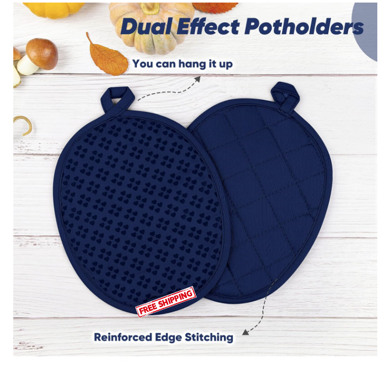 Oven Mitts and Pot Holders 4 Sets, Heat Resistant 500 ℉ Oven Mitt and Pot Holder,Oven Glove&Potholders with Non-Slip Silicone Surface,Kitchen Essentials for Cooking/Baking/BBQ-Marine Blue Kitchen Essentials: These sets of oven mitts and pot holders feature heart-shaped silicone prints that provide a strong grip and effectively prevent slippage. Bid farewell to awkward accidents and welcome effortless maneuvering in the kitchen. Whether you need to remove a hot casserole dish or adjust a sizzling pan,these silicone oven mitts pair will certainly come in handy ️ High Heat Resistance: The oven mitts are made of pure soft quilted cotton lining,with a heat resistant up to 500 ℉ and excellent insulation performance,protecting users from burns.These oven mitts heat resistant are designed to keep your hands cool,allowing you to oncentrate on crafting culinary masterpieces. ️ Convenient Storage & Easy Accessibility: The hanging loop feature in our pot holders and oven mitts sets,which provides a convenient storage solution.offering a convenient storage solution. Whether you hang them on hooks, place them on shelves, or keep them in kitchen utensil storage boxes, you’ll always have easy access to your pot holders and oven mitts. ️ Versatile Use & Easy Clean : The oven mitt and pot holder set are easy to clean and can be machine washed or hand washed.These kitchen essentials can be used for a variety of cooking tasks,including baking,grilling,stovetop cooking and more.The oven glove and pot holder are also a perfect gift for baker and cooker. All-round Protection: Our gloves are designed with a length of 11.5 inches, providing full coverage and protection for your fingertips to forearms. Our hot pads and oven mitts are specifically crafted to ensure the safety and comfort of baking enthusiasts and kitchen staff. We are committed to providing excellent customer service.If you encounter any issues, simply send us a message through the Amazon message,and we will promptly assist you within 24 hours. SHIPPING: We offer FREE shipping on all orders! We ship within Three business days of payment, usually sooner. We use a selection of shipping services such as UPS, FedEx, USPS etc. We only ship to the lower 48 states, no APO/FPO addresses or PO Boxes allowed. Local pickups and combined shipping options are not provided at this time. PAYMENT: We accept payment by any of the following methods: PayPal Please pay as soon as possible after winning an auction, as that will allow us to post your item to you sooner! FEEDBACK: Customer satisfaction is very important to us. If you have any problem with your order, please contact us and we will do our best to make you satisfied. Thank you for shopping with us!