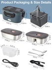 【Powerful 80W Rapid Heating】 Engineered for efficiency, the self heating lunch box heats your food quickly and evenly with its 80W power, reducing heating time to just 25-40 minutes. Enjoy hot, delicious meals without the long wait. 【Lidded Containers, Convenient Storage】 Unlike other lunch boxes that lack lids and require food transfer, this heated lunch box includes two containers with food-grade PP lids that fit securely. They feature tight-fitting silicone sealing rings for 360-degree leak protection, allowing you to them directly in the fridge and transfer them easily to the lunch box, saving time and ensuring hygiene. Warm Tip: Dry the container surface before heating to prevent damage. And please remove the lids before heating. 【Two Interchangeable 1.5L Containers】 electric heated lunch box features two 1.5L 304 stainless steel containers, including options with single and dual compartments. This design offers flexible meal storage for various food types and portions, ensuring your meals stay warm on the go. Additionally, a 0.45L PP fruit box is included, perfect for packing healthy sides and creating a balanced meal. 【On-the-Go Convenience, No Microwave Needed】 Skip the microwave lines by using the lunch box with any 12V, 24V, or 110V outlet. Heat your meal up to 30 minutes in advance and enjoy a warm dish wherever you are, whether in a car, truck, or office. It’s a practical solution for busy lifestyles. 【Leak-Proof & Dishwasher Safe】 The electric lunch box is equipped with sealing rings to prevent leaks and spills during transport. The stainless steel container and included 0.45L fruit box are both dishwasher safe, saving time and effort with easy clean-up. 【Upgraded Matte Shell】 This lunch box showcases a sleek matte surface that resists stains and offers a sophisticated look. It features an innovative utensil compartment that also functions as a stand, allowing you to watch videos or use your with ease during mealtime. 【One-Year 】 offers a one-year on this electric lunch box, customer support is readily available to assist you, ensuring a hassle-free experience and added peace of mind. (Please note that the outer shell of the heating lunch box should not be stored in the refrigerator, as it may cause product malfunction and pose a risk of short circuit.)