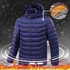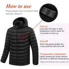 Kind reminder: The size of this product is Asian size, which may be slightly smaller for Europeans and Americans. It is recommended that Europeans and Americans buy one to two sizes larger Heated Jacket Coat Thermal Jacket Camping Coat Overcoat 15 Areas Warm Zipper Men Heating Padded Coat USB Charging Solid Color Coat Warm Padded Coat Heating Clothes Features: Care instructions: Hand washing is recommended *1.one minute fast heat, dispel cold and keep you warm. *2.With mobile power storage pocket, easy travel. *3.Set the temperature you want to respond to a variety of environments. *4.A button to heating, three stall temperature control, intelligent heating. *5.Fabric 20D nylon plus waterproof treatment. *6.Do Not wring it by hand. *7.General USB interface power supply, longer service life,anti water splashing and washable. *8.The fashion is warm, comfortable and breathable, and it's a good partner for your winter going out. Specification: Temperature Shift(Manual adjustment) Warm:45-55 ℃ (Red Light) Comfort:35-45 ℃ (White Light) Energy Saving:25-35 ℃ (Blue Light) Style: Long sleeve cotton coat Material: Polyester Color: Black,Blue Size: M,L,XL,XXL,3XL,4XL,5XL Power Supply Interface: USB Function: Keep warm, Anti water splashing and Prevent cold How To Use: 1.Take out USB plug. 2.Plug in removable charger. 3.Switch on the removable charger. 4.Press the chest temperature control switch for two second. 5.Red light flashing,means heating automatic. 6.After red light flashes for 5 minutes,then automatic turn to white light,means medium temperature. 7.Manual adjustment has three level,red light means hign-temperature heating continuously. White light means medium heating continuously,blue light means low heating continuously. 8.Press the chest temperature control switch for two second,lights out and stop heating. Package list: 1pcs Heated Jackets(Power banks are not included)